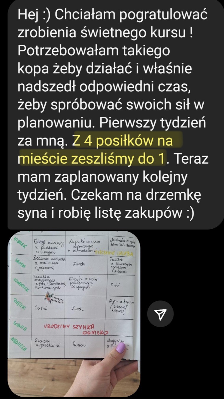 To jest pierwszy krok do zbudowania prostego, stałego systemu posiłków, który odciąża głowę i daje spokój na cały tydzień — bez perfekcji, bez rewolucji, bez męczenia się.